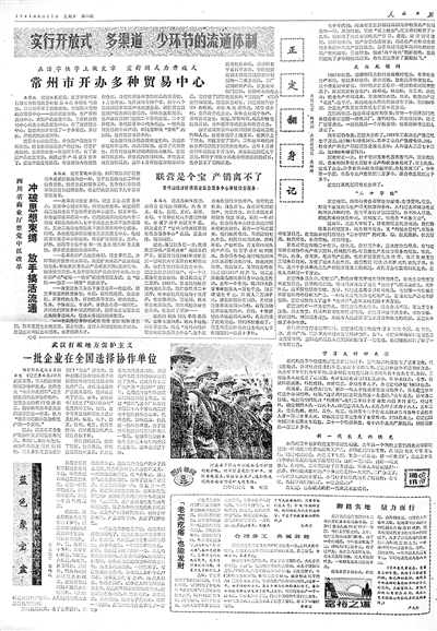 1984年6月17日,《人民日報》刊發通訊《正定翻身記》,肯定正定的探索,贊揚正定發展“半城郊型”經濟“既為城市服務,又掏城市腰包,在服務中發展自己”。(資料圖片)
