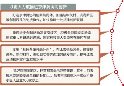 為加速“京津研發(fā)、河北轉化”,今年,河北省將以更大力度推進京津冀協(xié)同創(chuàng)新。打造京津冀協(xié)同創(chuàng)新共同體,加強與中關村、濱海新區(qū)等創(chuàng)新源頭的對接協(xié)作,加快構建一批共建創(chuàng)新聯(lián)盟;建設雄安創(chuàng)新驅(qū)動發(fā)展引領區(qū),積極爭取國家實驗室、國家重大科研基礎設施、國家科技重大專項等在新區(qū)布局;實施“科技冬奧行動計劃”,在冰雪運動裝備、可穿戴設備、新型材料、虛擬現(xiàn)實等方面加強研發(fā)應用,提升冰雪運動和冰雪產(chǎn)業(yè)發(fā)展水平;抓好京南示范區(qū)、環(huán)首都農(nóng)業(yè)示范帶建設,其中,前者技術交易額要占全省的1/4以上,后者將培育高水平農(nóng)業(yè)科技小巨人企業(yè)100家以上。