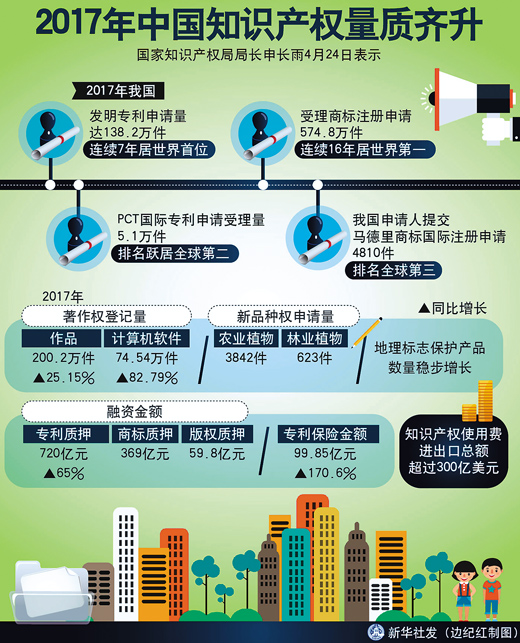 此前,習近平主席在博鰲亞洲論壇2018年年會開幕式上發表主旨演講時指出,“加強知識產權保護。這是完善產權保護制度重要的內容,也是提高中國經濟競爭力大的激勵。”