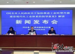 3月20日,河北省政府新聞辦召開新聞發(fā)布會,對《河北省人民政府關(guān)于加快推進工業(yè)轉(zhuǎn)型升級建設(shè)現(xiàn)代化工業(yè)體系的指導(dǎo)意見》進行解讀。圖為發(fā)布會現(xiàn)場。記者杜昱輝攝 河北新聞網(wǎng)3月20日訊