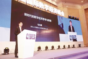 騰訊公司董事局主席兼首席執(zhí)行官馬化騰作主題演講。記者閆思宇攝 □記者吳新光 11月23日上午,騰訊公司董事局主席兼首席執(zhí)行官馬化騰現(xiàn)身石家莊太行國賓館。當(dāng)天,騰訊公司與雄安新區(qū)