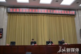 全省落實加快推進科技創新若干措施電視電話會議現場。記者吳新光攝 長城新媒體10月22日訊(記者吳新光)日前,河北省出臺《加快推進科技創新的若干措施》。省科技廳廳長馬宇駿對《加快推