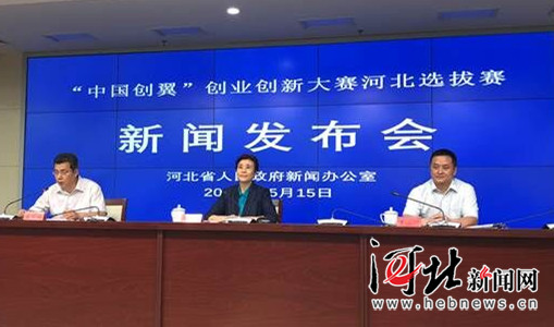 5月15日,“中國(guó)創(chuàng)翼”創(chuàng)業(yè)創(chuàng)新大賽河北選拔賽新聞發(fā)布會(huì)召開。圖為發(fā)布會(huì)現(xiàn)場(chǎng)。蘇暢攝