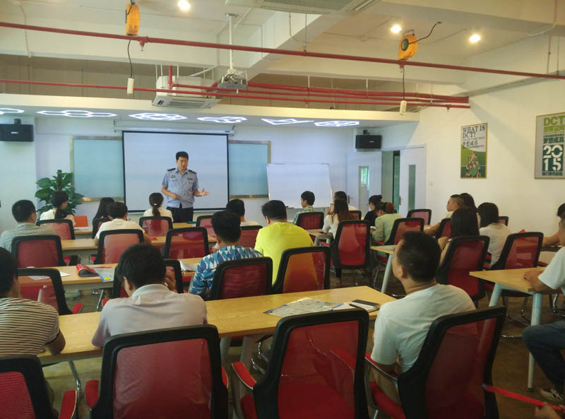 2015年8月21日,邯鄲高開區(qū)派出所警察在邯鄲高科園區(qū)“DCT創(chuàng)客空間”會議室為在園企業(yè)開會,會議內(nèi)容是“關(guān)于園區(qū)所有企業(yè)防火、治安等問題”。