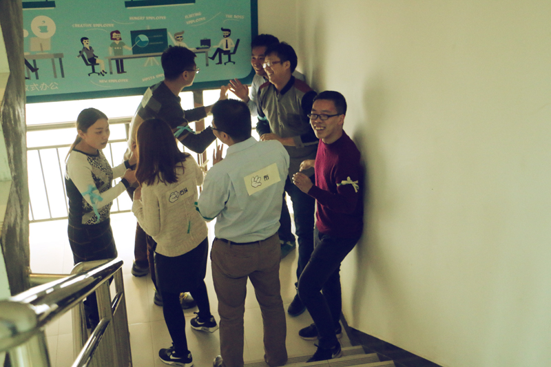 2015年11月13日下午正式開撕,參加此次活動(dòng)的園區(qū)企業(yè)員工,準(zhǔn)時(shí)來到DCT創(chuàng)客空間一層。游戲還沒開始,氣氛就已經(jīng)調(diào)動(dòng)起來,大家躍躍欲試,開始在假想的對(duì)手中演練,興奮之情,溢于言表,游戲的緊張氣氛,撲面而來。15:30游戲分組之后,大家更是摩拳擦掌,運(yùn)籌帷幄,好似開弓之箭,蓄勢(shì)待發(fā),主持人宣布游戲開始,所有人當(dāng)即進(jìn)入狀態(tài),極速奔跑起來,DCT創(chuàng)客空間里,很快響起興奮的尖叫聲和吶喊助威聲,協(xié)助防護(hù),配合進(jìn)攻,乘勝追擊,相互保護(hù)等環(huán)節(jié),精彩不斷。