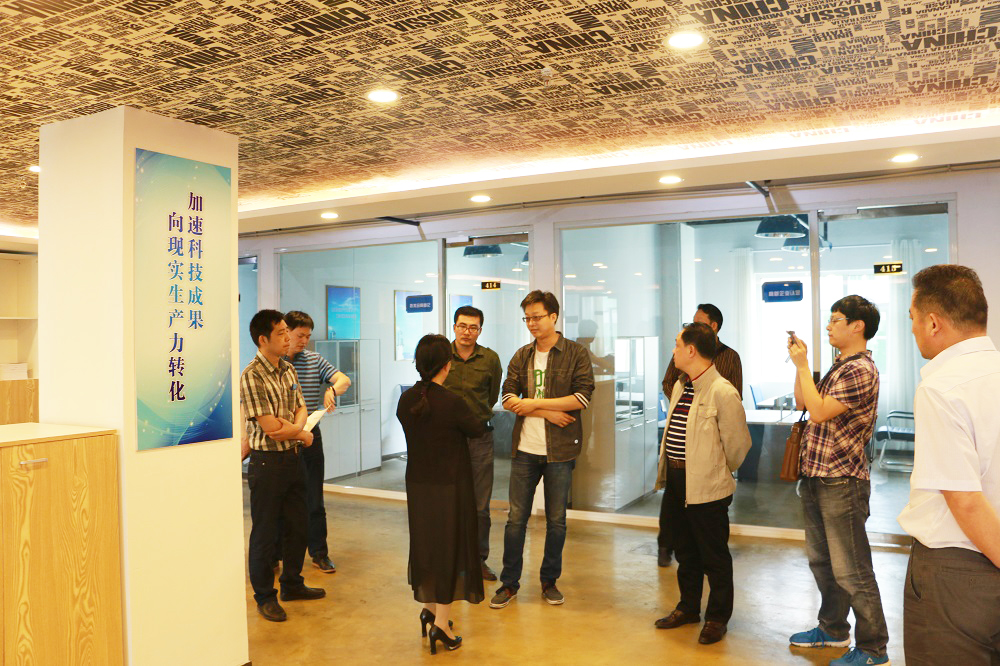 隨后,一行人又來到DCT創(chuàng)客空間四層參觀——邯鄲市技術交易中心的駐地。王江濤向大家介紹了邯鄲市技術交易中心所在的意義:邯鄲高科將依托邯鄲市技術交易中心科技信息平臺建設與運營的經驗,利用自身的優(yōu)勢,為園區(qū)企業(yè)及創(chuàng)客們提供更多更優(yōu)質的“軟服務”。 通過信息互聯(lián)互通、資源開放共享、市場聯(lián)合拓展的協(xié)同創(chuàng)新機制,挖掘企業(yè)需求,整合科技成果資源,促進科技資源供需對接,推動技術轉移與成果轉化工作,促進產業(yè)升級與產業(yè)轉型;通過完善的創(chuàng)新服務網(wǎng)絡,集成利用科技中介服務資源,實現(xiàn)技術轉移服務一體化,提自身的公共服務水平。考察組對這里的配套服務和設施十分滿意,并表示對常德市的眾創(chuàng)空間將有很好的借鑒作用。