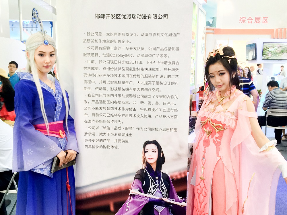 本次展會期間,優(yōu)派瑞展出精美的動漫服飾,將新的技術(shù)成果和嚴謹?shù)墓ぷ骼砟钤谡箙^(qū)向中外參展人員進行了集中展示,完美的呈現(xiàn)了傳統(tǒng)手工藝和動漫文化產(chǎn)品的創(chuàng)新高效結(jié)合。乘著“十三五”文化產(chǎn)業(yè)將成為國民支柱性產(chǎn)業(yè)的東風,優(yōu)派瑞將依托“文化+科技+金融”的服務(wù)平臺,在“文化引領(lǐng)城市轉(zhuǎn)型發(fā)展”的浪潮中,更好更多的將動漫文化化零為整,作為公眾文化向大眾推出,更好的推廣普及動漫文化,為社會創(chuàng)造更大的價值。