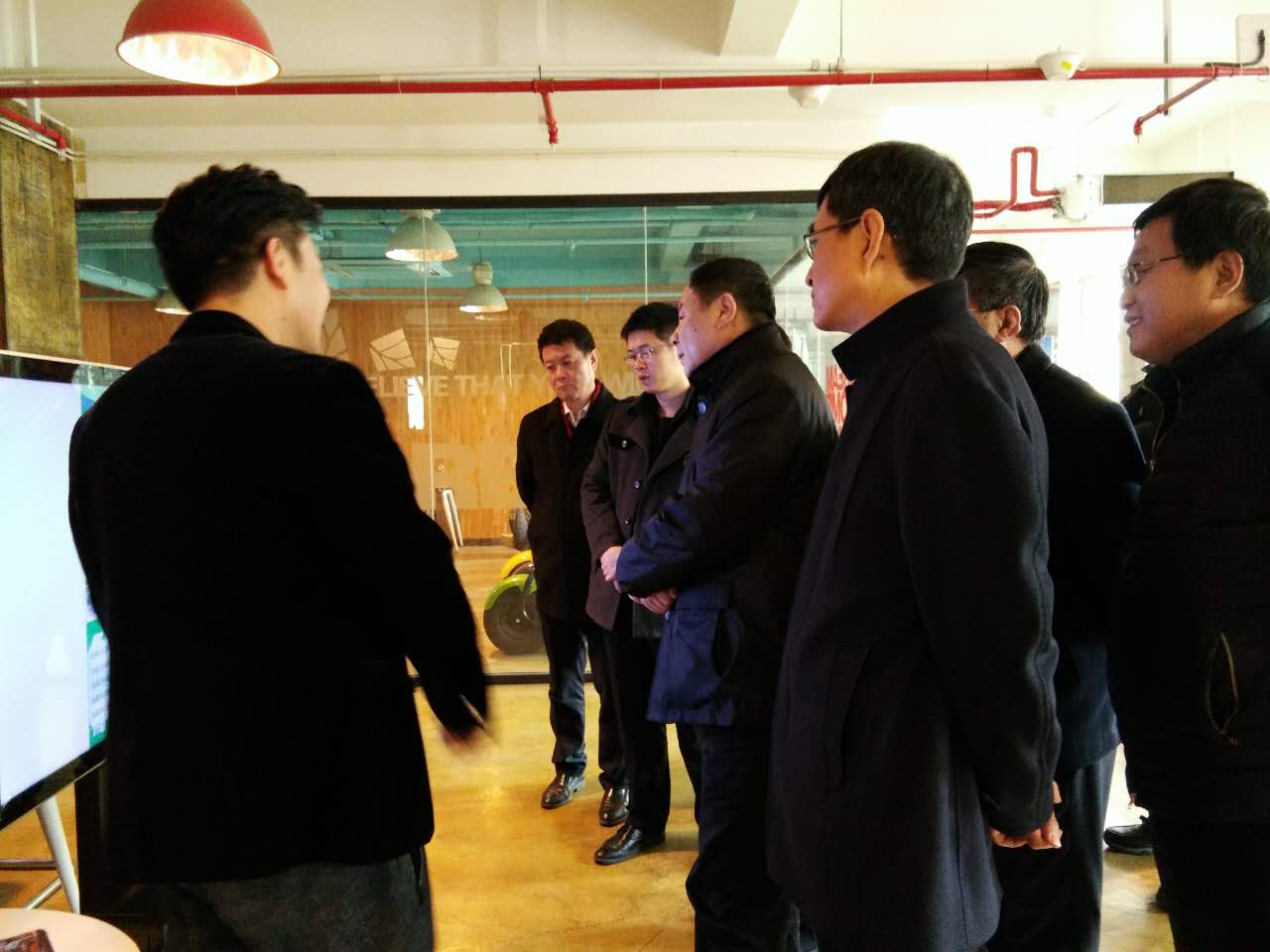 為落實河北省第九次黨代會精神,2016年12月7日上午,省發改委副主任毛宇山一行調研新興產業發展和科技人才創業到DCT創客空間參觀調研,開發區黨工委副書記、管委會副主任肖宏韜陪同調研,邯鄲高科園區發展股份有限公司常務副總經理李青、DCT創客空間行政部部長周承樸陪同參觀。