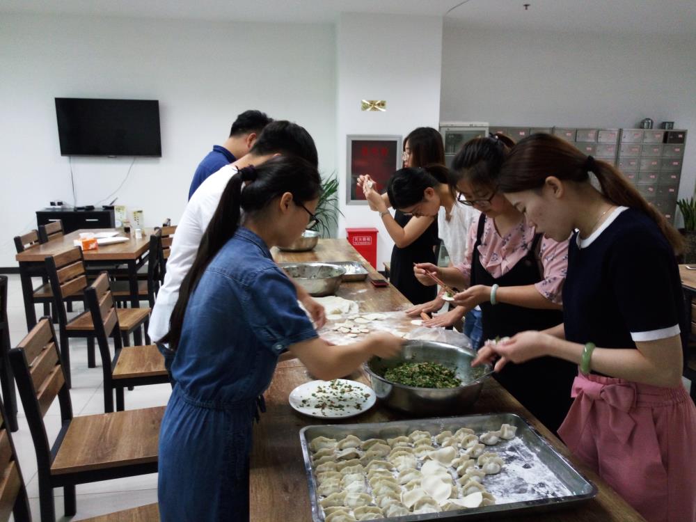 全體員工齊聚一堂,拿出已經(jīng)準備好的餡料和面團,大家摩拳擦掌,迫不及待地想展露一下自己的手藝。會搟皮兒的搟皮兒,會包餃子的包餃子,什么都不會的則虛心請教,每個員工都積極參與,大家通力合作,完成了一盤又一盤的餃子。后,大家看著各式各樣的餃子,都不禁樂開了花。品嘗后的成果時,熱氣騰騰的餃子拉近了彼此的距離,充滿著其樂融融、和諧融洽的氣氛。
