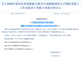 近日,河北省科學技術廳根據(jù)《2018年度省級科技計劃項目評審工作方案》(冀科資函〔2017〕132號)有關規(guī)定,2018年度河北省創(chuàng)新能力提升計劃創(chuàng)新創(chuàng)業(yè)人才團隊及院士工作站建設專項已完成